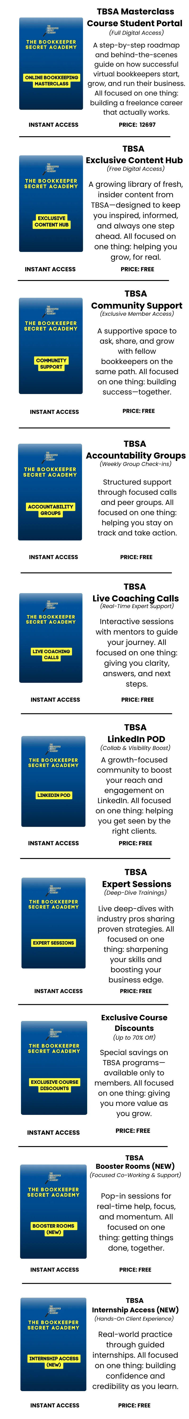 ✅ The TBSA’s 16-Step Blueprint you can follow in your bookkeeping businesses and why it’s so effective…